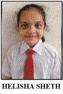 - Helisha Sheth of Std. VI completed 8 levels and received Grade 3 credit in UCMAS Mental Arithmetic.