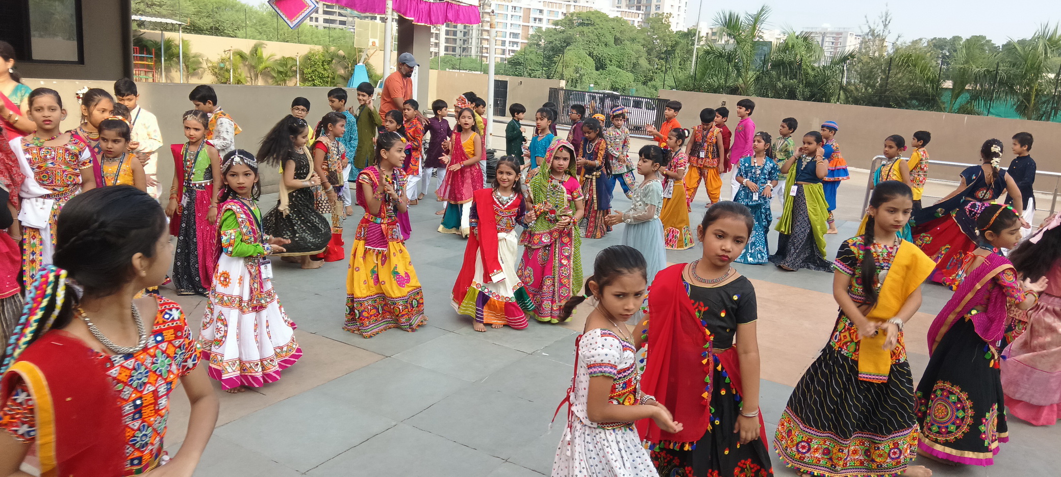 Bright Day School celebrated the festival for the students of Std. I to V on 25th September 2025 and for the students of Std. VI to XII on 26th September 2025. The students and teachers participated in the Garba festival with equal zeal and enthusiasm and danced and swirled to the beats of the music throughout the celebration. Our Directress, Ms Swara Shah, also joined the floor and swirled to the beats of the garba songs, much to the joy of the students. All the students were dressed in bright, colourful costumes making the ambience energetic and vibrant. Certain girls enthusiastically dressed up as Goddess Parvati, Radha etc. The boys, dressed in beautiful costumes and colourful headgears i.e. 'paghadis', looked equally enchanting. Brightians were awarded prizes for best performance and costume, by eminent and experienced judges of great repute. The 'Aarti' and 'Garba' sung during the celebration made the atmosphere divine. The celebration ended with the 'Timli' dance.