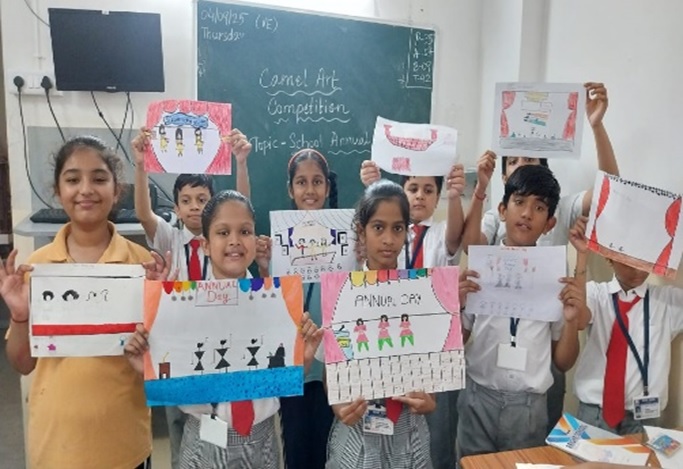 “Our students showcased their creativity in the Camel Art Contest, presenting beautiful artworks that reflected imagination, skill, and passion for art.”.
