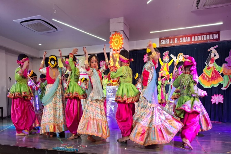 Our school celebrated Navratri with great enthusiasm and devotion. The campus was beautifully decorated, creating a festive vibe. Students from Std. I to VIII came dressed in colorful ethnic attires, adding charm and grace to the occasion.The celebration began with traditional festivities, followed by an energetic Garba session and Aarti performed by our Directress, Ma’am Swara Shah, spreading divine positivity. The event concluded with a prize distribution ceremony, making it a truly memorable celebration of culture, tradition, and joy.