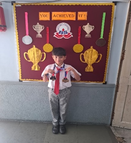 Shivansh Dalwadi of Std IV A received Silver Medal in Rink Race 1 and Bronze Medal in Rink Race 2 in the TBDRSA PROMOTIONAL COMPETITION-2025 Organized by THE BARODA DISTRICT ROLLER SKATING ASSOCIATION. He also participated in School Game Federation of India (SGFI) and got selected for State Level in Skating Competition Under 14 boys and secured the following positions.