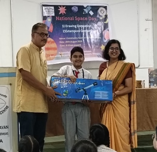 Arya Patel of Std VIII A won 3rd prize in Drawing Competition organised by Community Science Centre on the occasion of National Space Day.