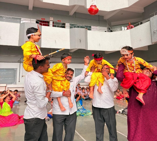 The highlight of the celebration was the “Dahi handi” which was broken by the standard 1st students dressed as Lord Krishna. The celebration was concluded with arti, distribution of prasad and swinging Lord Krishna in his cradle with spiritual joy and festive cheer.