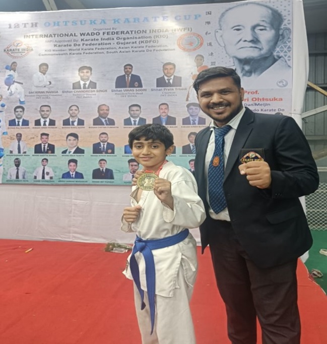 Meet Saidane of Std. VII-A won a Gold Medal in Kumite in International Wado Federation India 12th Ohtsuka Karate Cup at 3rd August 2025.