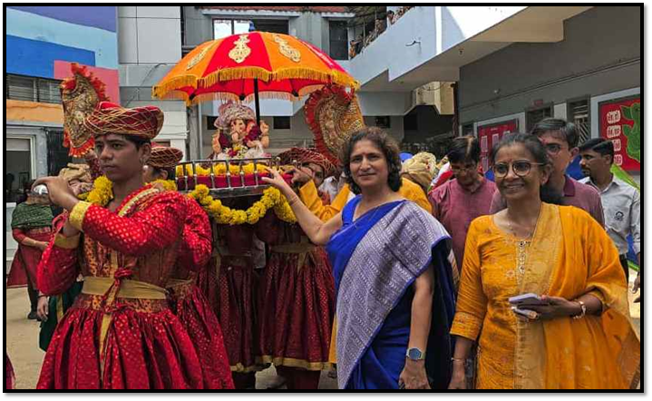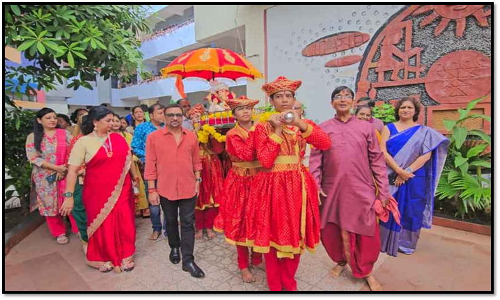The idol of Lord Ganesh was brought in the school premises with full respect. The students drew the pictures of ' Bappa ' as well as the picture of 'Sawntsari' on the school notice board.