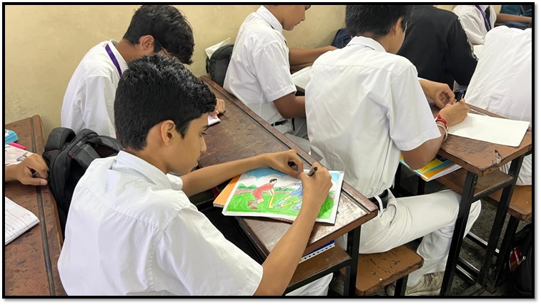A Drawing Competition was organised by the Government to celebrate the 75th birthday of the honorable Prime Minister Mr Narendra Modi. The subject was :- વિકસિત ભારત કે રંગ કલા કે સંગ