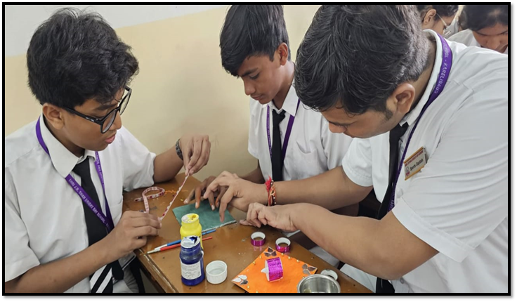 Considering the upcoming festival of the Diwali, the school organised the activities of Card Making as well as Lamp Decoration. The purpose of this activity was to make the students understand the traditional way of celebrating the festival and to develop the aesthetic sense among them. The students participated wholeheartedly. They were guided by Ms Preeti Jani……