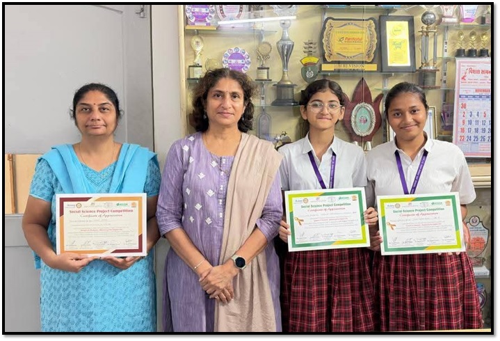 'ROTARY VADODARA ONE' in association with Nagesh Charitable Trust, Indian Plastics Institute,Community Science Centre and SOCLEEN organised an Inter school *SOCIAL SCIENCE PROJECT COMPETITION on the topic 'SCREENS AND STUDENTS : BALANCING THE DIGITAL LIFE',* wherein our school students of std IX participated forming two teams.They received participation certificates alongwith unique experiences of creativity and knowledge :