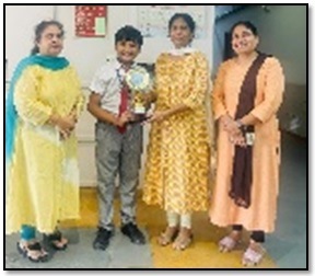 Hetarth Talati of Std. VI C bagged the man of the match trophy & Kanish Shah of Std. V F has received a consolation prize in Cricket Tournament.