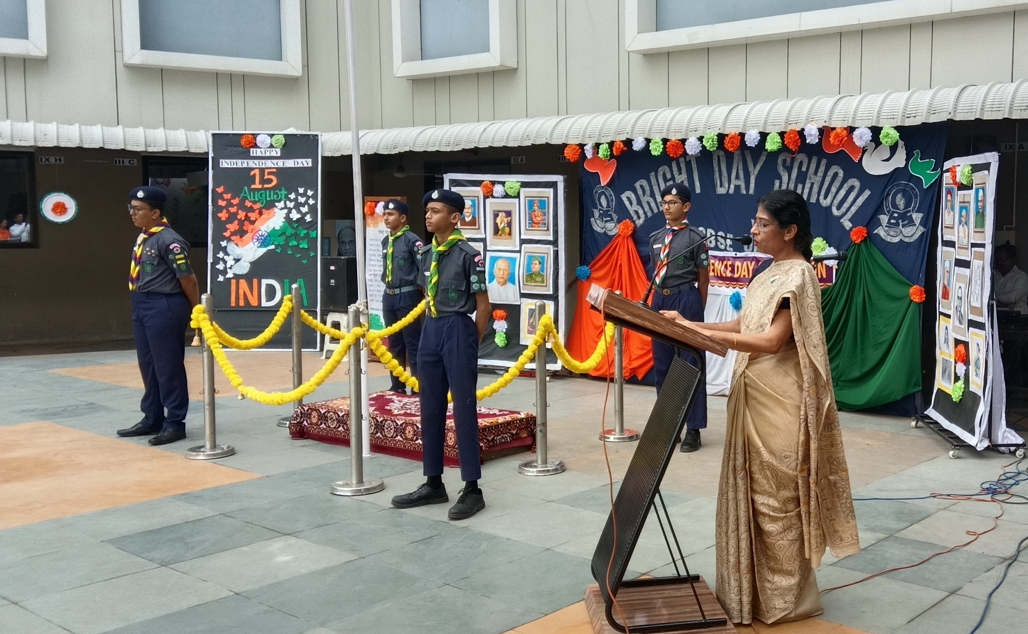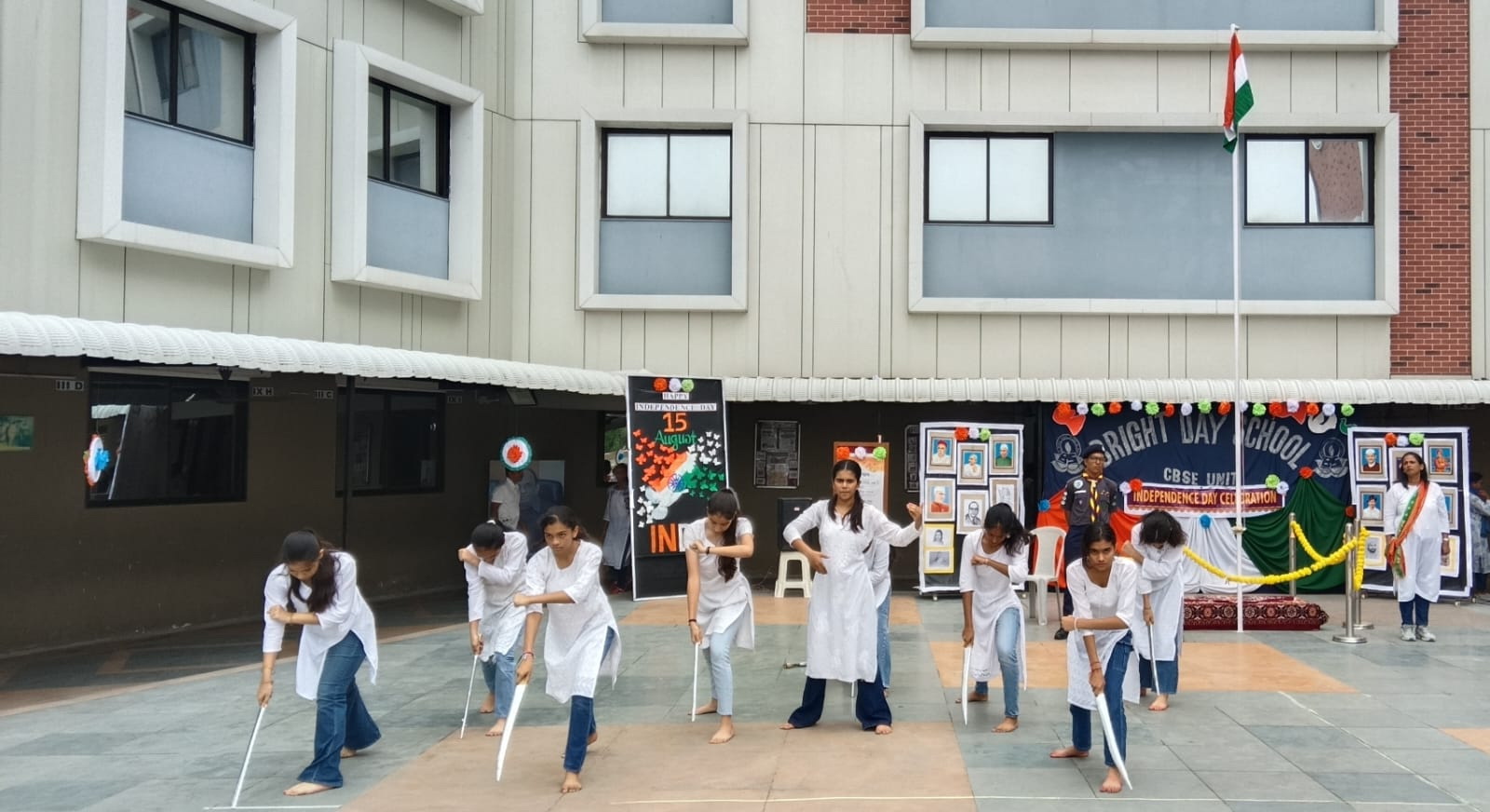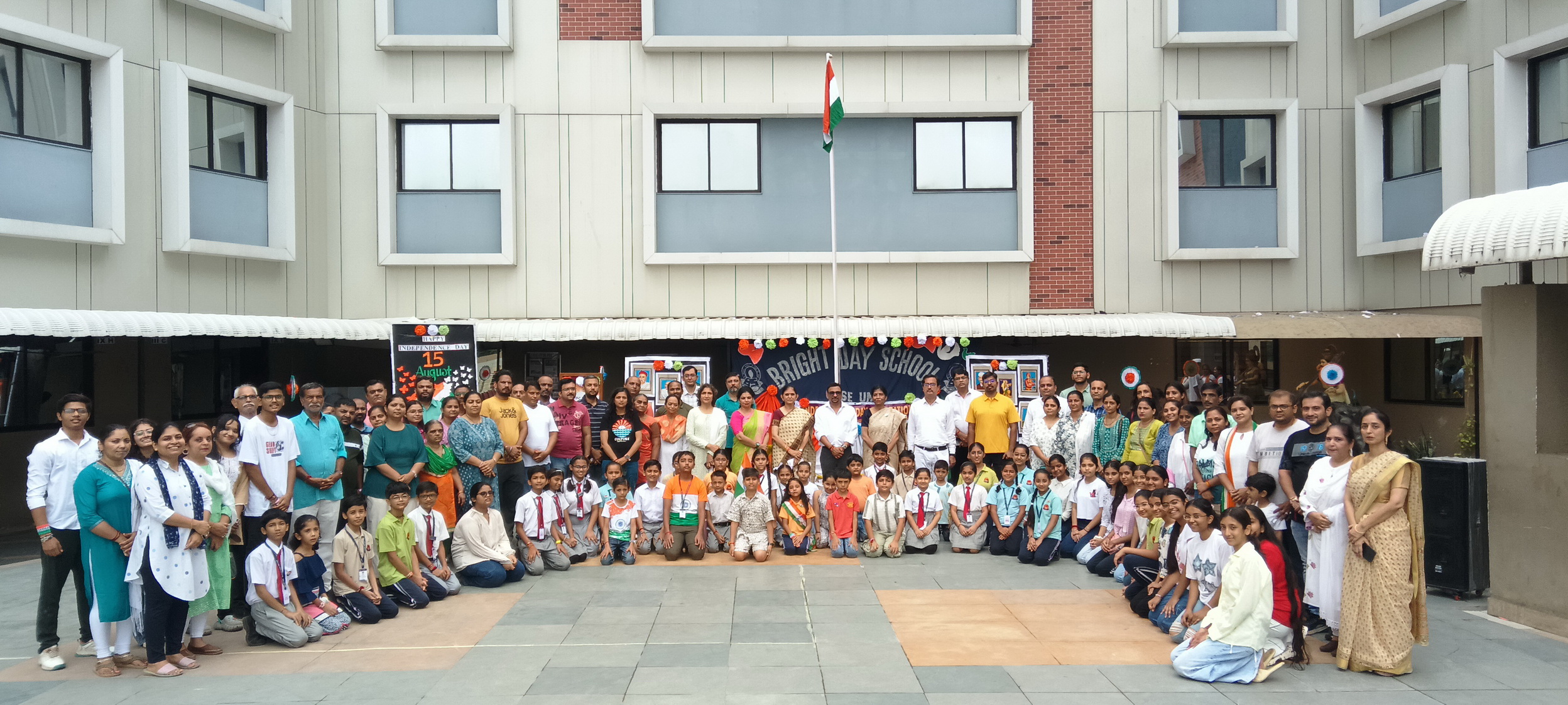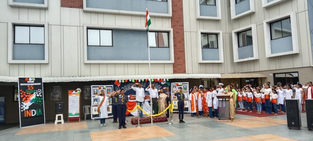 The Independence Day programme commenced with a welcome speech. The Flag Hoisting ceremony was performed by the Chairman Dr Simit Shah, escorted by the Principal Ms Neeta Sharma. This was followed by the singing of the National Anthem. Instilled with a sense of pride for the nation, the heads, teachers, parents and students sang the Jhanda Geet. In the speech that followed, our Principal urged the students to study hard and strive for excellence, while also respecting parents, teachers and all elders, thereby fostering a sense of empathy and kindness. Highlighting the significance of cleanliness, she encouraged students to take pride in their surroundings and contribute towards maintaining a clean environment. The principal also stressed the value of honesty and integrity, inspiring students to be kind and compassionate towards others. In today's digital age, she cautioned the students against the excessive use of mobile phones and advised judicious use of social media, promoting responsible online behavior. Drawing inspiration from our nation's legacy of freedom fighters, she encouraged students to uphold the values of courage and patriotism that have shaped our country's history. In a heartfelt tribute to our national heroes, Brightians performed energetic dances under the mentorship of our choreographer Mr Jimmish Chaudhary. 'Viranjali' a performance highlighting the role played by Rani Laxmibai in the freedom movement received a huge round of applause from the audience. This was followed by a soulful patriotic song sung by the Brightians under the mentorship of our music teacher Mr Rajiv Dashputre. Towards the culmination of the event the national song – Vande Mataram was sung. The function ended by proposing the Vote of Thanks. Brightians alongwith their parents attended the function in large numbers.