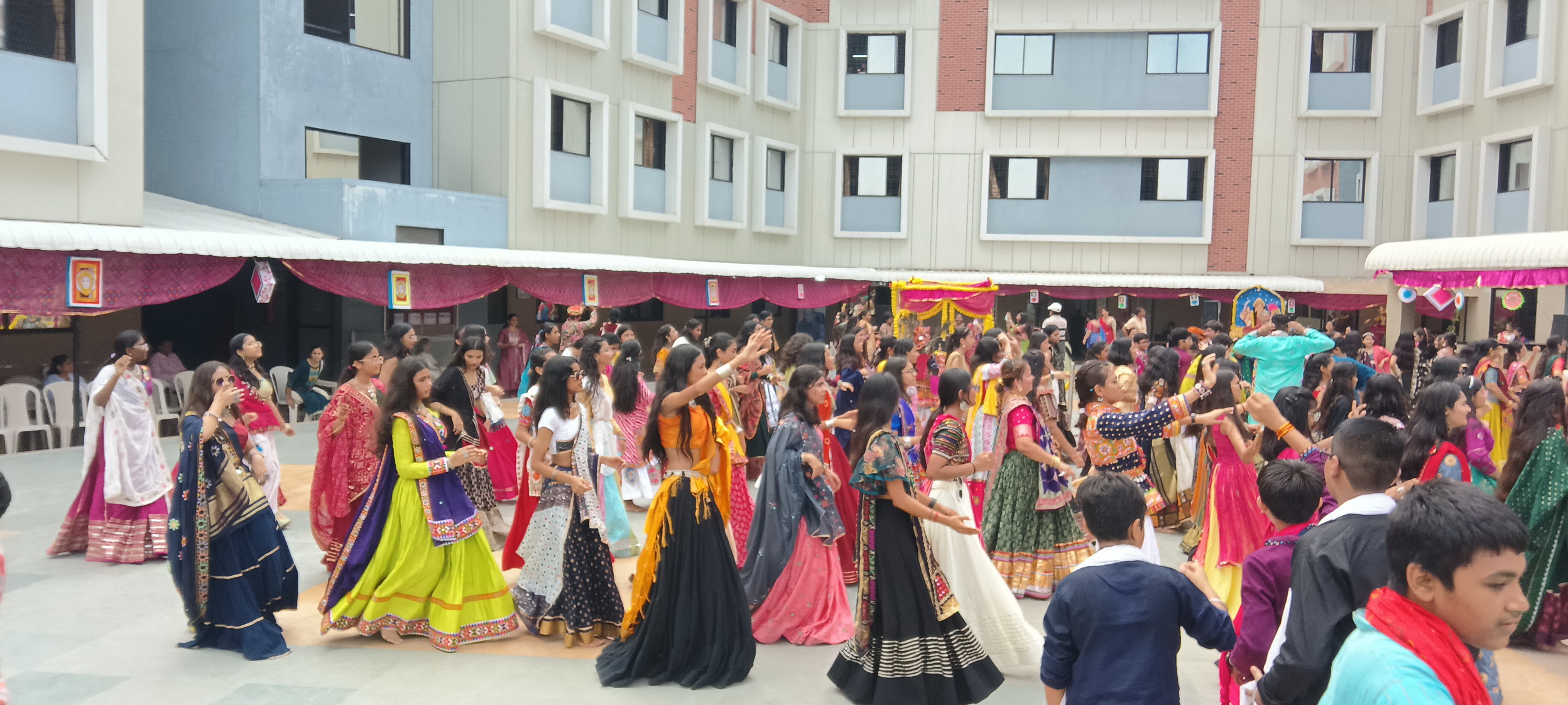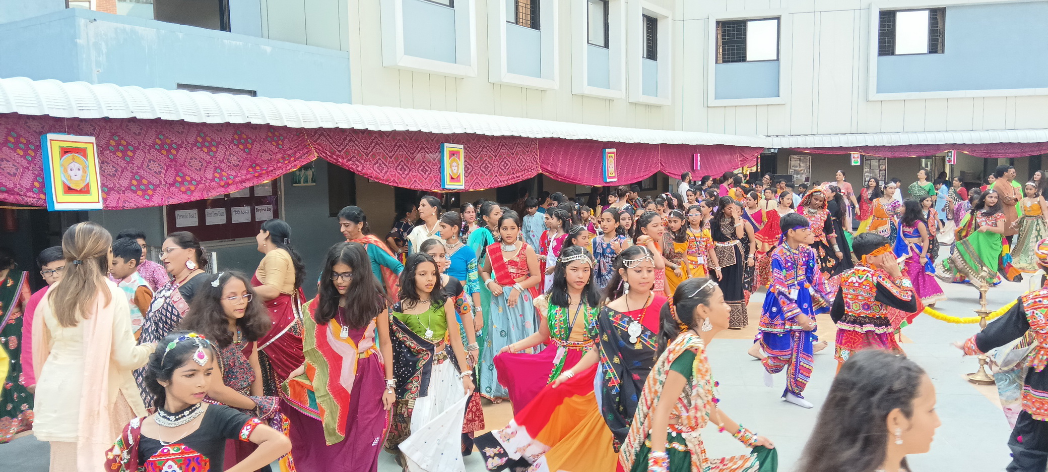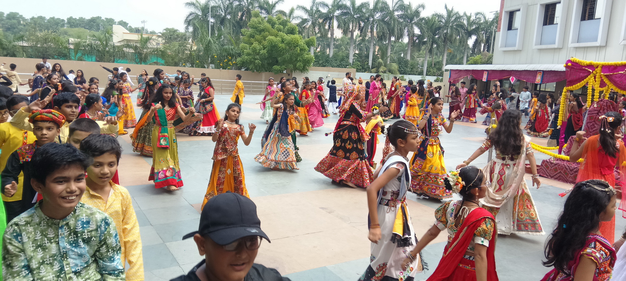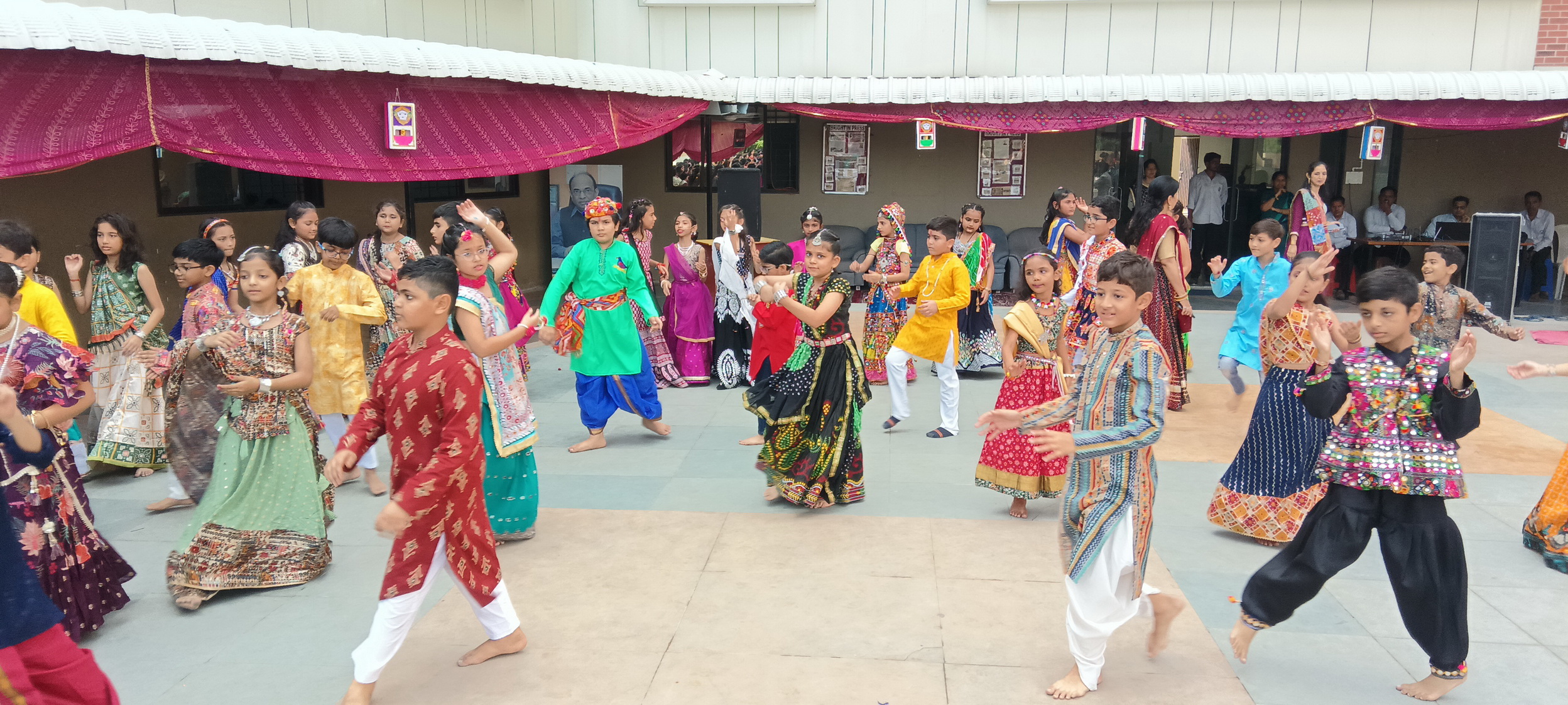 Bright Day School celebrated the festival for the students of Std. I to V on 25th September 2025 and for the students of Std. VI to XII on 26th September 2025. The students and teachers participated in the Garba festival with equal zeal and enthusiasm and danced and swirled to the beats of the music throughout the celebration. Our Directress, Ms Swara Shah, also joined the floor and swirled to the beats of the garba songs, much to the joy of the students. All the students were dressed in bright, colourful costumes making the ambience energetic and vibrant. Certain girls enthusiastically dressed up as Goddess Parvati, Radha etc. The boys, dressed in beautiful costumes and colourful headgears i.e. 'paghadis', looked equally enchanting. Brightians were awarded prizes for best performance and costume, by eminent and experienced judges of great repute. The 'Aarti' and 'Garba' sung during the celebration made the atmosphere divine. The celebration ended with the 'Timli' dance.