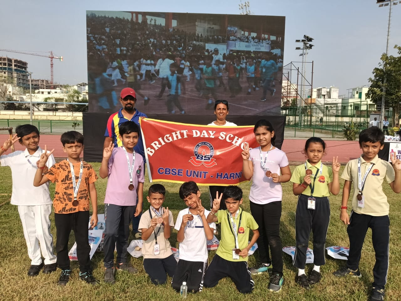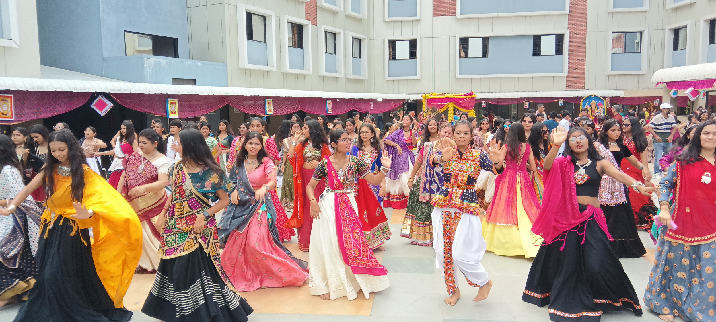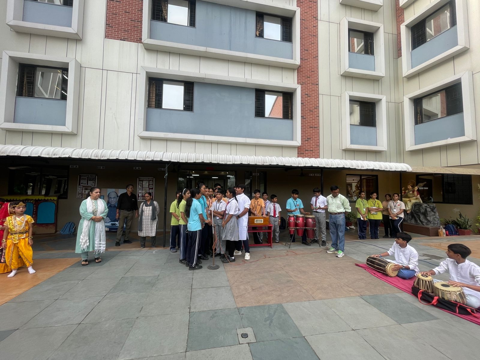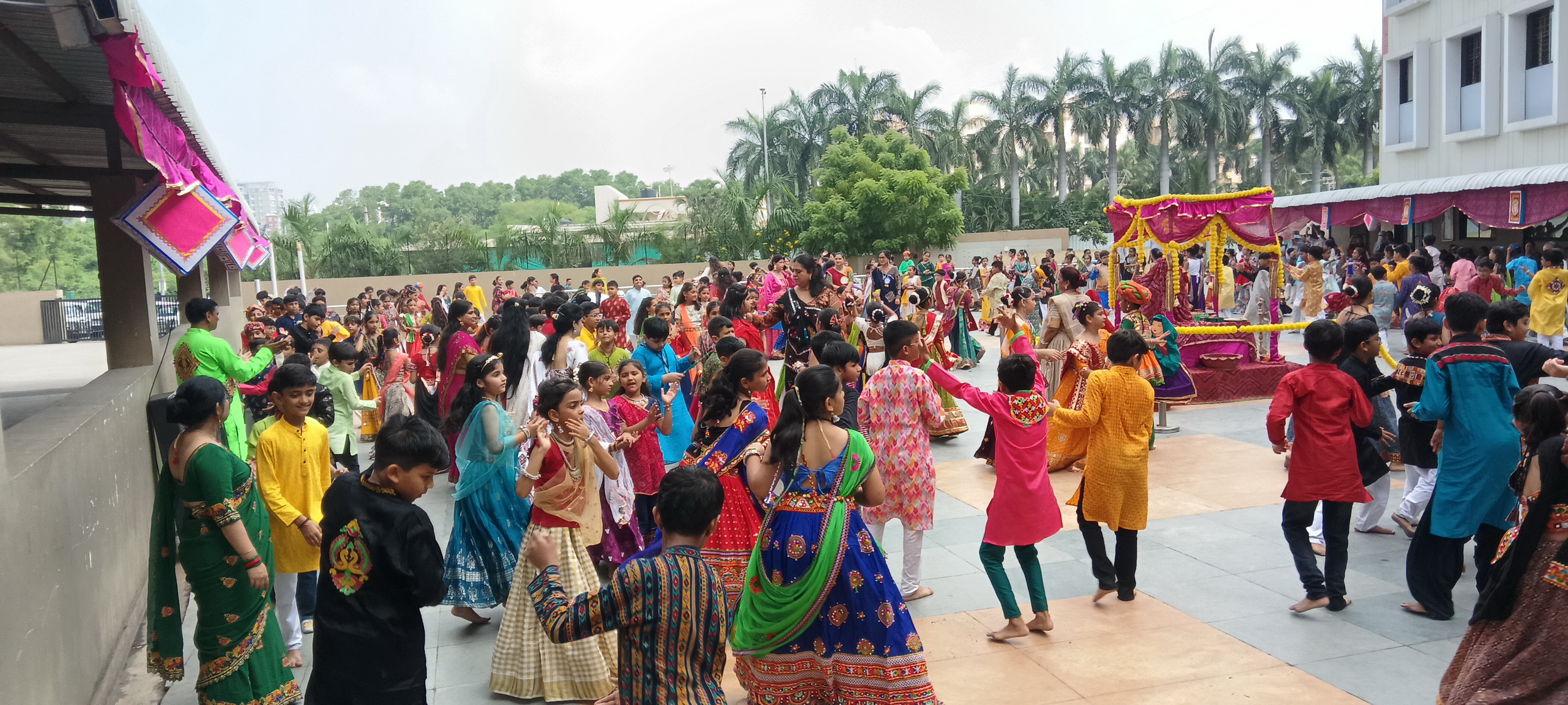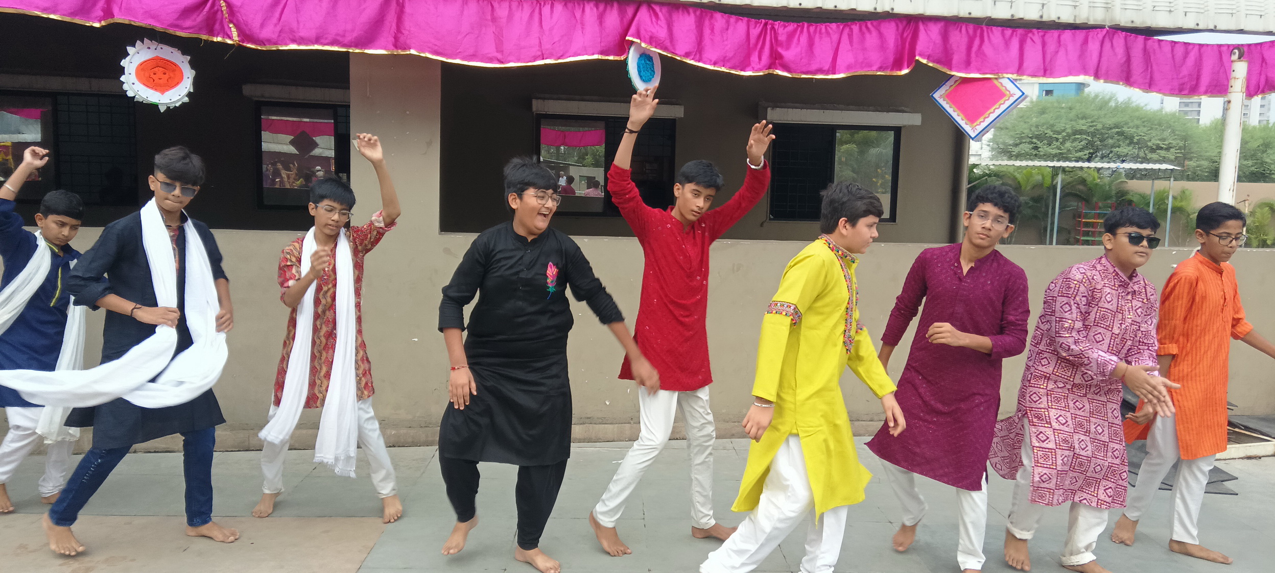 Bright Day School celebrated the festival for the students of Std. I to V on 25th September 2025 and for the students of Std. VI to XII on 26th September 2025. The students and teachers participated in the Garba festival with equal zeal and enthusiasm and danced and swirled to the beats of the music throughout the celebration. Our Directress, Ms Swara Shah, also joined the floor and swirled to the beats of the garba songs, much to the joy of the students. All the students were dressed in bright, colourful costumes making the ambience energetic and vibrant. Certain girls enthusiastically dressed up as Goddess Parvati, Radha etc. The boys, dressed in beautiful costumes and colourful headgears i.e. 'paghadis', looked equally enchanting. Brightians were awarded prizes for best performance and costume, by eminent and experienced judges of great repute. The 'Aarti' and 'Garba' sung during the celebration made the atmosphere divine. The celebration ended with the 'Timli' dance.