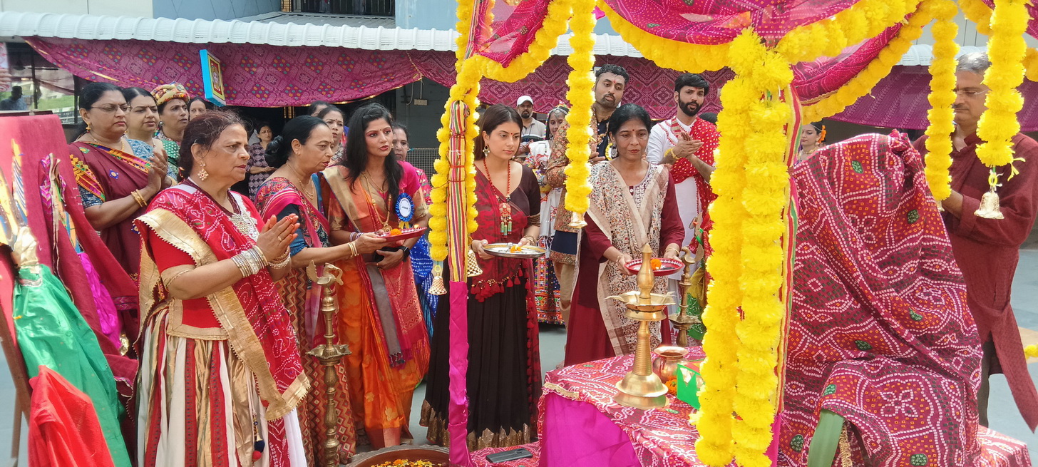 The word Navratri is a combination of two Sanskrit words - Nav, which means the number 9, and Ratra, which means night. Since this festival is celebrated over a period of nine nights across the country, it is called Navratri - the festival of 9 nights. Goddess Durga and her nine divine forms -'Navdurgas' are worshipped during this time. The nine divine forms include-Shailaputri, Brahmacharini, Chandraghanta, Kushmanda, Skanda Mata, Katyayani, Kalaratri, Mahagauri and Siddhidatri. In Gujarat, the festival is celebrated with great fervour. People worship the goddess by placing her idol in the centre and playing 'Garba' (a traditional folk dance) around the Goddess with great reverence, devotion and joy. This festival falls in Ashwini Shukla Paksha, according to the Hindu calendar. This year Navratri commenced on 22nd September and will end on 1st October. The festival concludes with Maha Navami rituals, Ayudha Puja and Vijayadashami; symbolizing the triumph of good over evil.