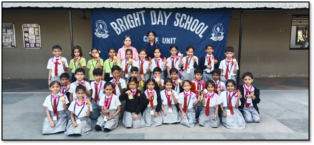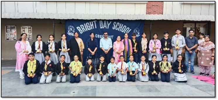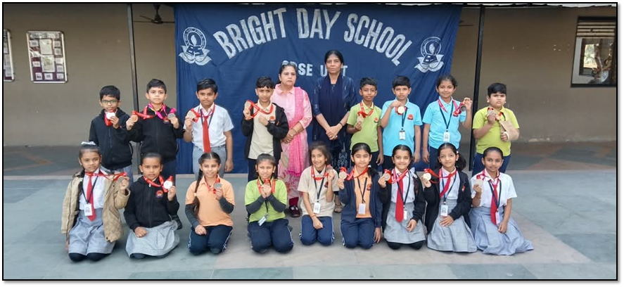 Brightians participated in National Level Art Competition organised by Rangotsav Celebration. The participants demonstrated their creativity and skill in various competitions like Handwriting, Cartoon Making , Colouring and Sketching. 32 Brightians won special awards and prizes. Aarya Tanmay Gor of Std. IX won the 1st prize in Cartoon Making Competition and received a Bicycle and a Trophy. 415 other participants received Gold, Silver and Bronze medals and Consolation prizes.