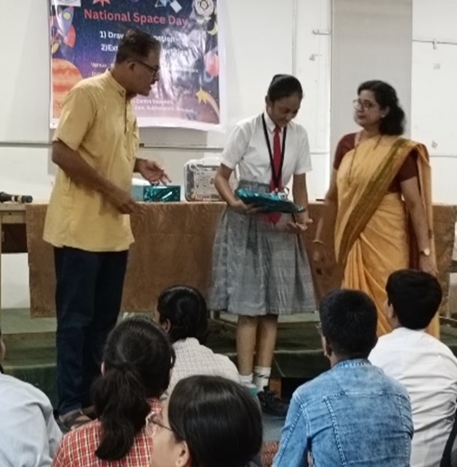 Arya Patel of Std VIII A won 3rd prize in Drawing Competition organised by Community Science Centre on the occasion of National Space Day.
