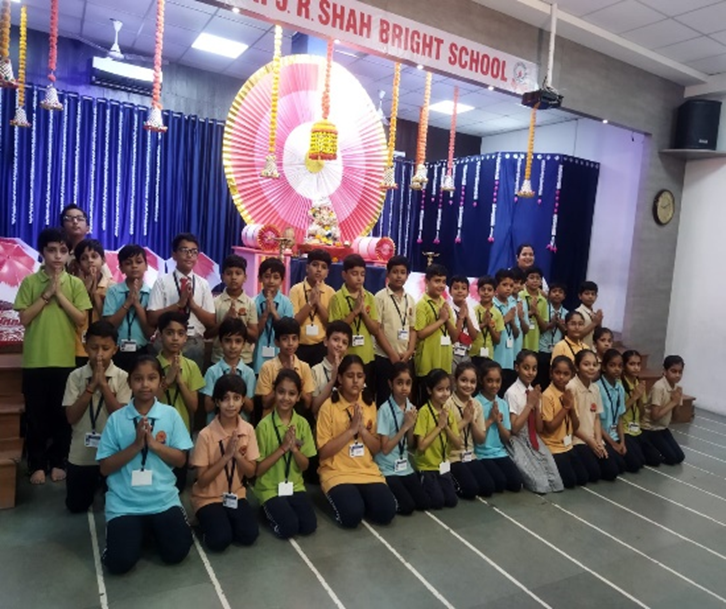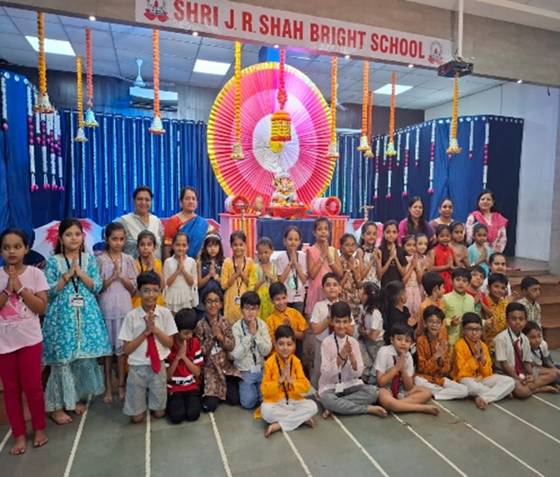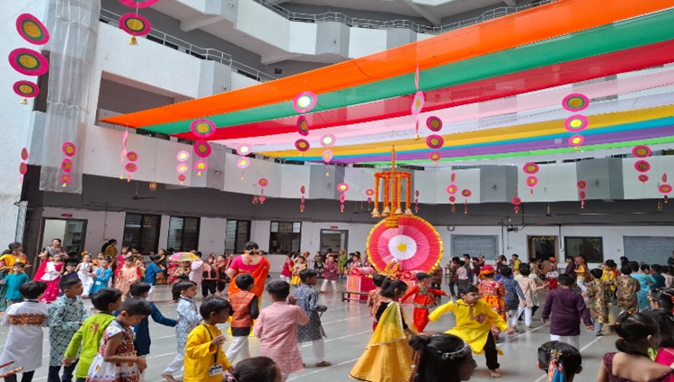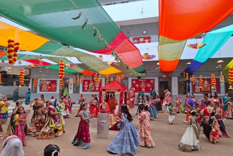 Our school celebrated Navratri with great enthusiasm and devotion. The campus was beautifully decorated, creating a festive vibe. Students from Std. I to VIII came dressed in colorful ethnic attires, adding charm and grace to the occasion.The celebration began with traditional festivities, followed by an energetic Garba session and Aarti performed by our Directress, Ma’am Swara Shah, spreading divine positivity. The event concluded with a prize distribution ceremony, making it a truly memorable celebration of culture, tradition, and joy.