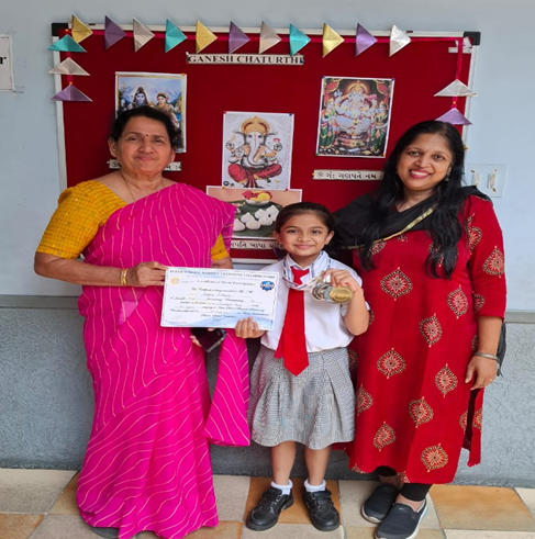 Rudraa Sachin Joshi of Std IV B received Prize as BEST ACTOR for SOCIAL One-act play in 'NATYA GAAN' organized by 70th ALL INDIA DRAMA & DANCE COMPETITION.