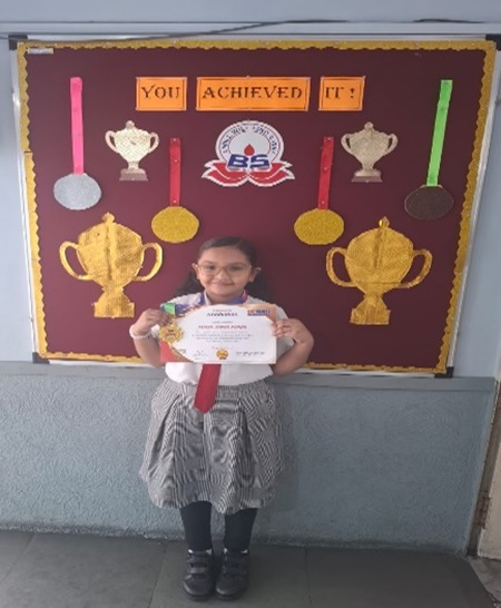 Malak Parikh of Std IV C received Gold Medal for successfully completing All the Eight Levels of UCMAS and the Pre-requisite International Grading Exam.