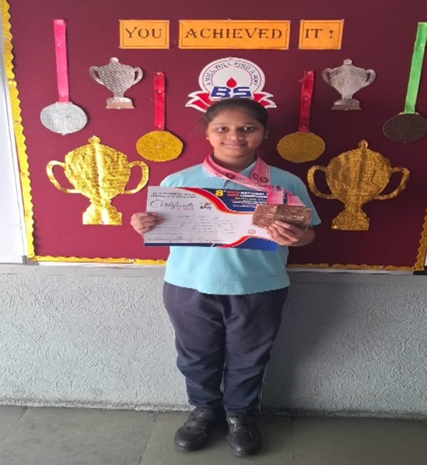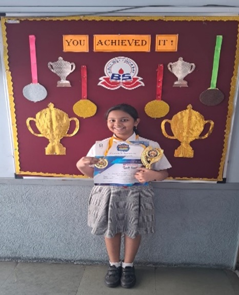 Harshita Chitte of Std V A received Gold Medal in WRITING WIZARDS Handwriting Olympiad and Trophy in WIZ INTERNATIONAL SPELL BEE organised by WIZ INTERNATIONAL.