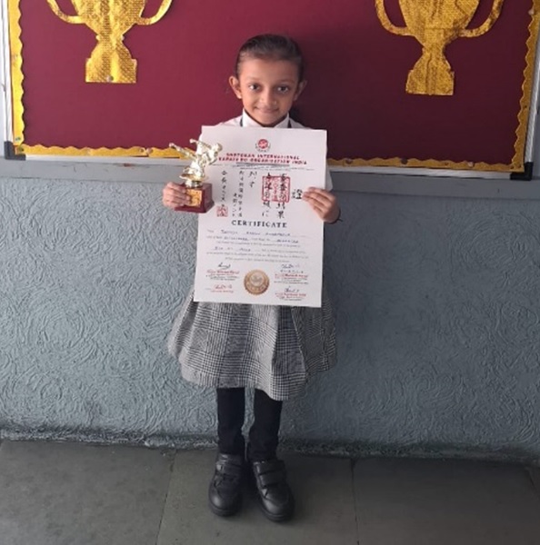 Tanaya Kumamekar of Std I B received trophy in karate Competition held by SHOTOKAN INTERNATIONAL KARATE DO ORGANISATION INDIA.