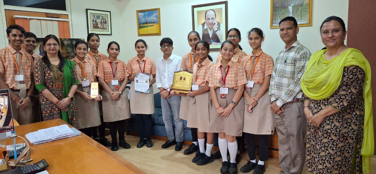 We are delighted to announce that our proficient students have emerged victorious in the All India Democratic Students Organization’s Narmad Meghani Inter-School Singing Competition, where they faced tough competition from 21 schools. With golden voice, dedication, pitch perfection, our shining stars claimed the First Position in the Group Singing Category. Our winners made an indelible impression on the judges and audience with their soulful singing.