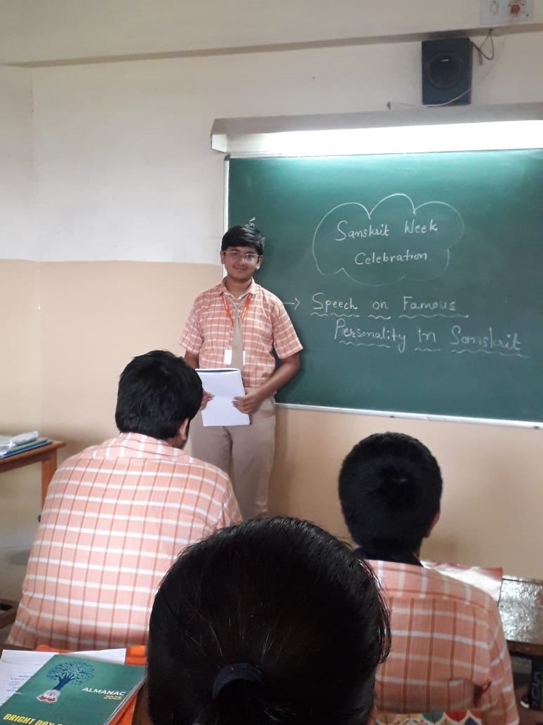 Students recited shlokas with their translation, talked about famous personalities like Kalidas, Vivekanand, Gandhi and special to mention our beloved Shri Jayendra Shah sir.