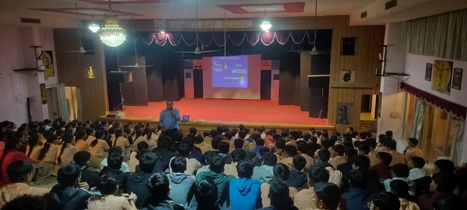 Our school organized a Stress Management Workshop conducted by Mr. Sumit Ghoshal to help students of Std. X to deal with academic pressure and develop healthy study habits. The session focused on effective study techniques and simple practices to reduce stress during examination time.