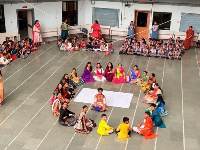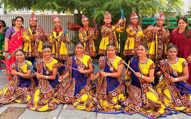 Navratri Mahotsav was celebrated in Shri J. R. Shah Bright School on 27th September 2025 with great enthusiasm and colourful decorations. Students and teachers came dressed in traditional attire and participated in Garba and Dandiya performances.The school campus was beautifully decorated with lights and flowers.Everyone worshipped Goddess Durga and prayed for peace and prosperity. The celebration reflected the spirit of unity, culture, and devotion. It was a joyful and memorable event for all.