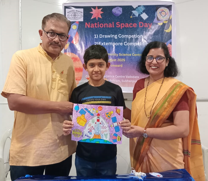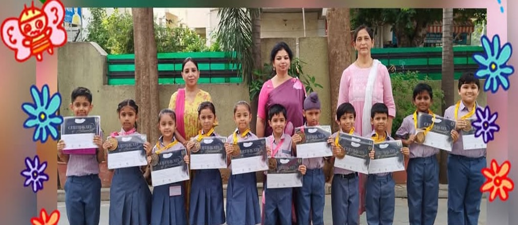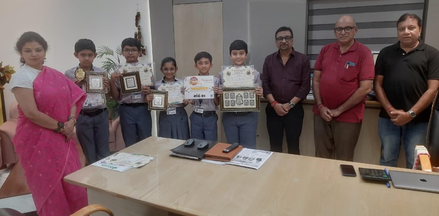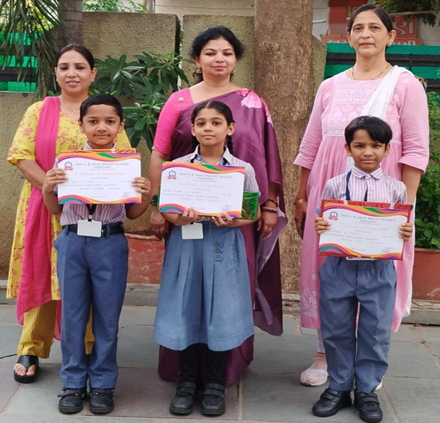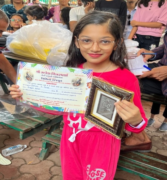 Rudraksh D. Suthar from VI-A secured 1st position and was awarded a Certificate and Silver Ashtavinayak Ganesha Frame. Ishani S. Patel from V-B, Mehaan R. Kotadia from VII-A and Keyan Rana from VI-A were awarded Certificate and Silver Ganesha Frame.