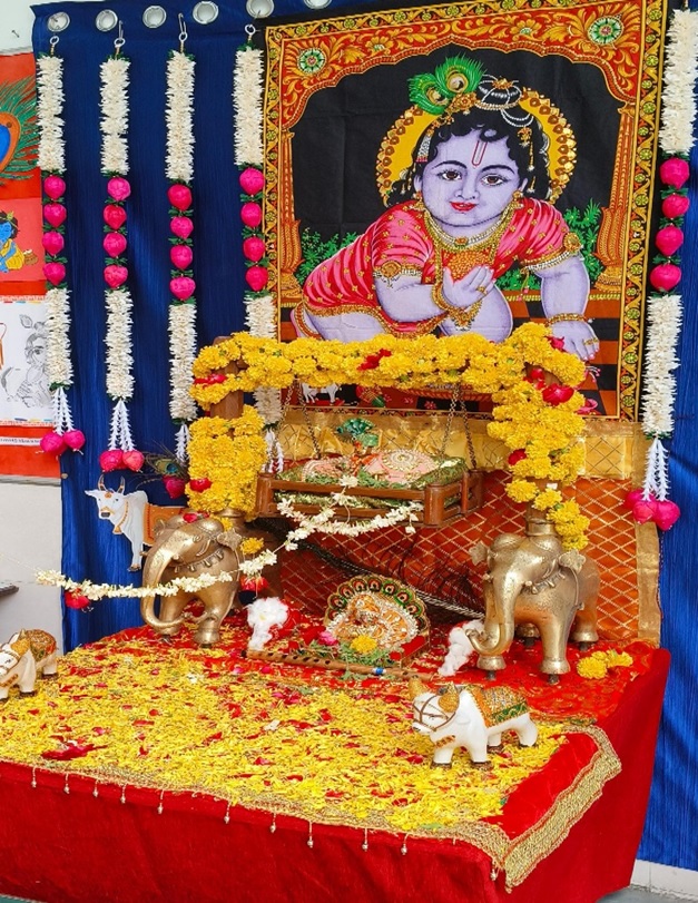 The highlight of the celebration was the “Dahi handi” which was broken by the standard 1st students dressed as Lord Krishna. The celebration was concluded with arti, distribution of prasad and swinging Lord Krishna in his cradle with spiritual joy and festive cheer.