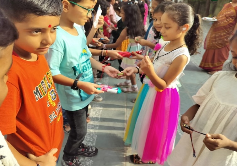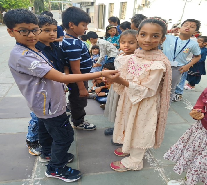 Rakshabandhan celebration held on 9th August 2025 at Shri J R Shah Bright School.The celebration was marked with joy, enthusiasm and cultural vibrance. The young students tied beautiful , hand made rakhi to one another symbolising the sacred bond of the love and protection between the siblings. Teachers guided the children in understanding the significance of this beautiful festival emphasizing values like brotherhood, care and respect.