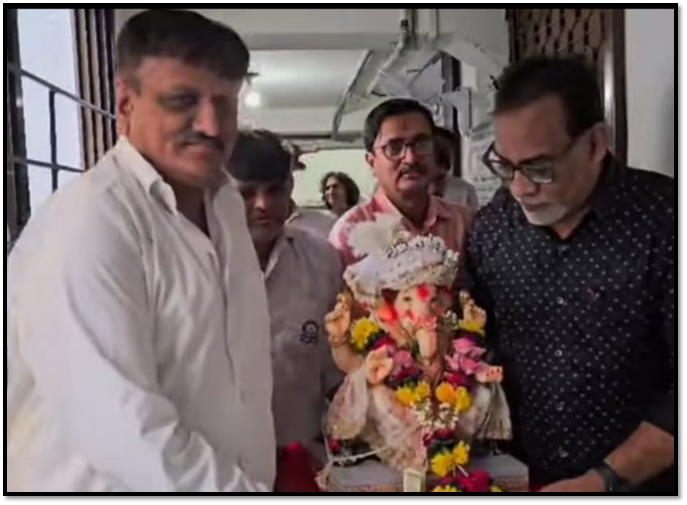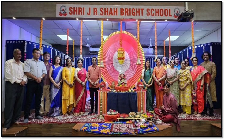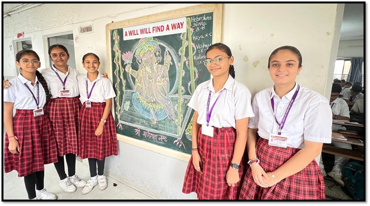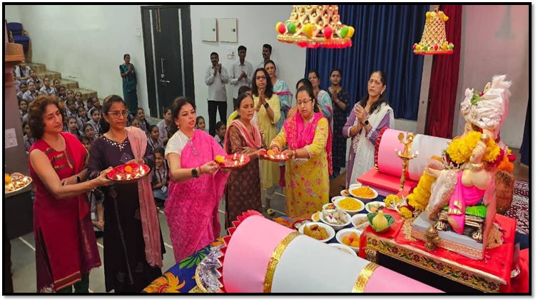 The idol of Lord Ganesh was brought in the school premises with full respect. The students drew the pictures of ' Bappa ' as well as the picture of 'Sawntsari' on the school notice board.