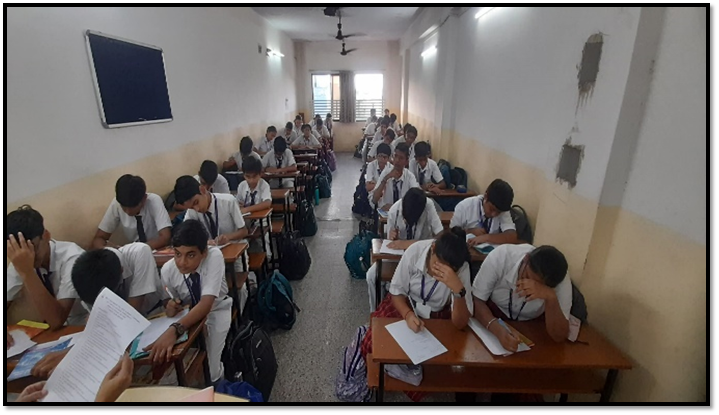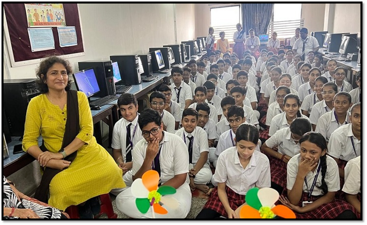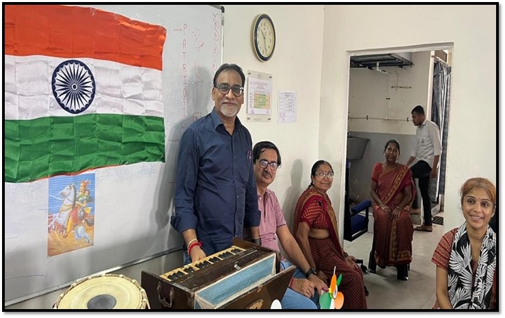 In order to celebrate the 79th Independence Day the school organised an activity of singing the patriotic song. The participants were guided and prepared by Mr Suketu Shah. He also played harmonium during the event. Yugman Bhatt (IX D) accompanied on the tabla. The programme was compered by Panth Patel (IX C). The student union helped to make the programme successful.