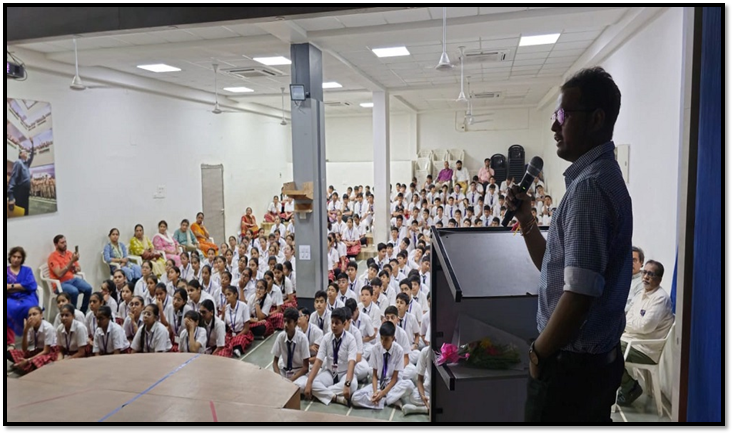 An Interactive Lecture by Scientist Dr. Kapil Bhardwaj. Dr. Kapil Bhardwaj, a distinguished scientist from the Physical Research Laboratory, Ahmedabad, who has also been associated with numerous ISRO projects, visited our school and delivered an enlightening lecture on the topic “Are We Alone in this Universe – A Myth or a Fact?” He illustrated the topic with power point presentation and various examples.