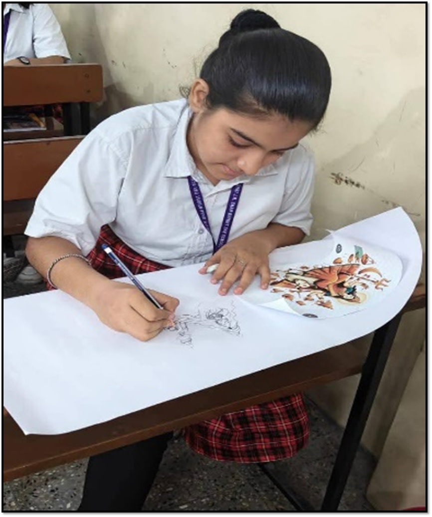 Keeping the upcoming festival of the Navratri in mind, the students drew the pictures of different forms of the Goddess Durga. The purpose behind this activity was to develop creativity and spirituality among the students. The pictures will be isplayed on the noticeboard during the Navratri Festival...