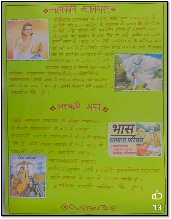 As part of the Sanskrit Day celebrations. Students from IX and X classes prepared beautiful and informative charts on topics such as famous Sanskrit shlokas and great scholars of ancient India, Shloka's chanting activity was also organized during the assembly to honor and celebrate the richness of the Sanskrit language.