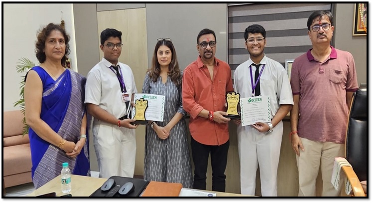 An interschool write up competition was organised by SOCLEEN in the year 2024-25. The Encouragement Prize was declared for two students of our unit. They were: Tathyasinh Vaghela (X D)and Jainam Patel ( X B ). Both were felicitated with a trophy and certificate in the Annual Prize Distribution ceremony of SOCLEEN.