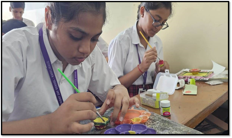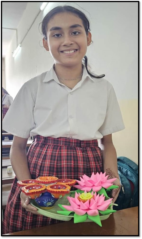 Considering the upcoming festival of the Diwali, the school organised the activities of Card Making as well as Lamp Decoration. The purpose of this activity was to make the students understand the traditional way of celebrating the festival and to develop the aesthetic sense among them. The students participated wholeheartedly. They were guided by Ms Preeti Jani……