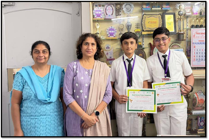 'ROTARY VADODARA ONE' in association with Nagesh Charitable Trust, Indian Plastics Institute,Community Science Centre and SOCLEEN organised an Inter school *SOCIAL SCIENCE PROJECT COMPETITION on the topic 'SCREENS AND STUDENTS : BALANCING THE DIGITAL LIFE',* wherein our school students of std IX participated forming two teams.They received participation certificates alongwith unique experiences of creativity and knowledge :