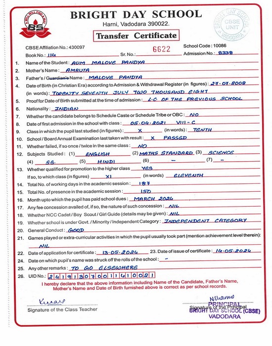 6459 Dhairya Mayurkumar Patel |